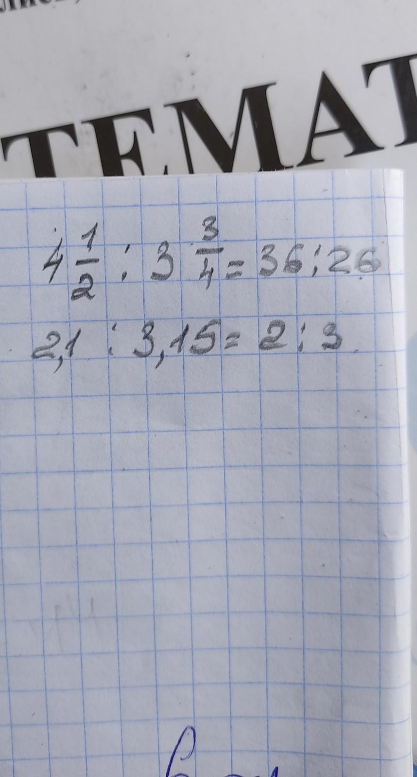 2,1:3,15=210:315=42:63=6:9=2:3 это верная пропорция