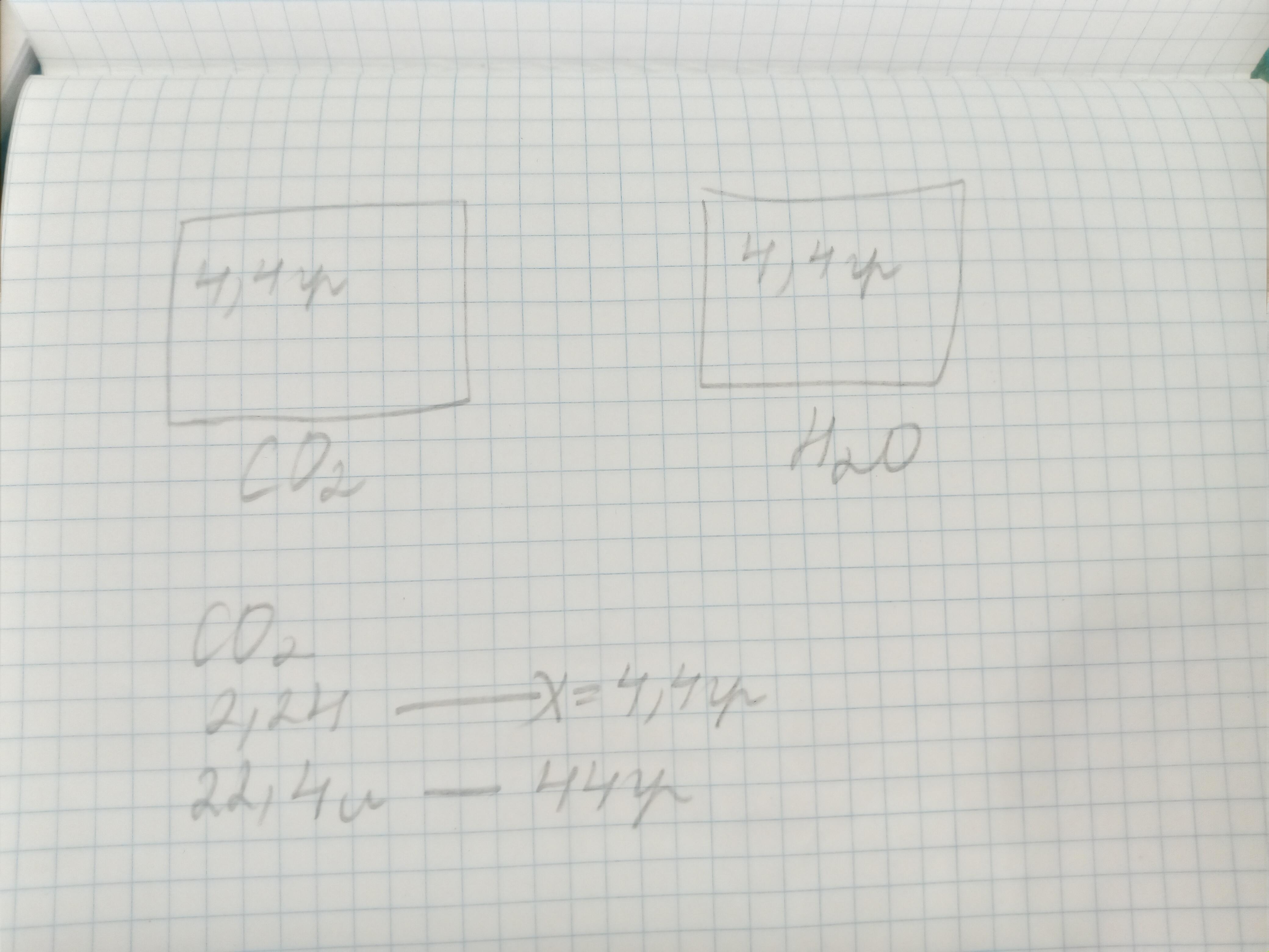 На одной чаше весов находится 2,24 л углекислого газа, какую массу воды надо поместить на вторую чашу, чтобы весы уравновесились.