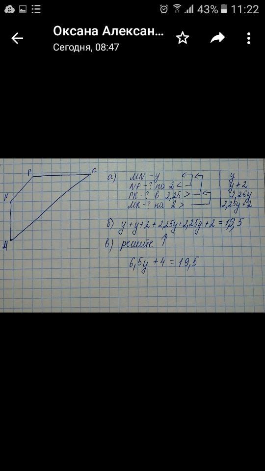 периметр MNPK равен 19,5 см и