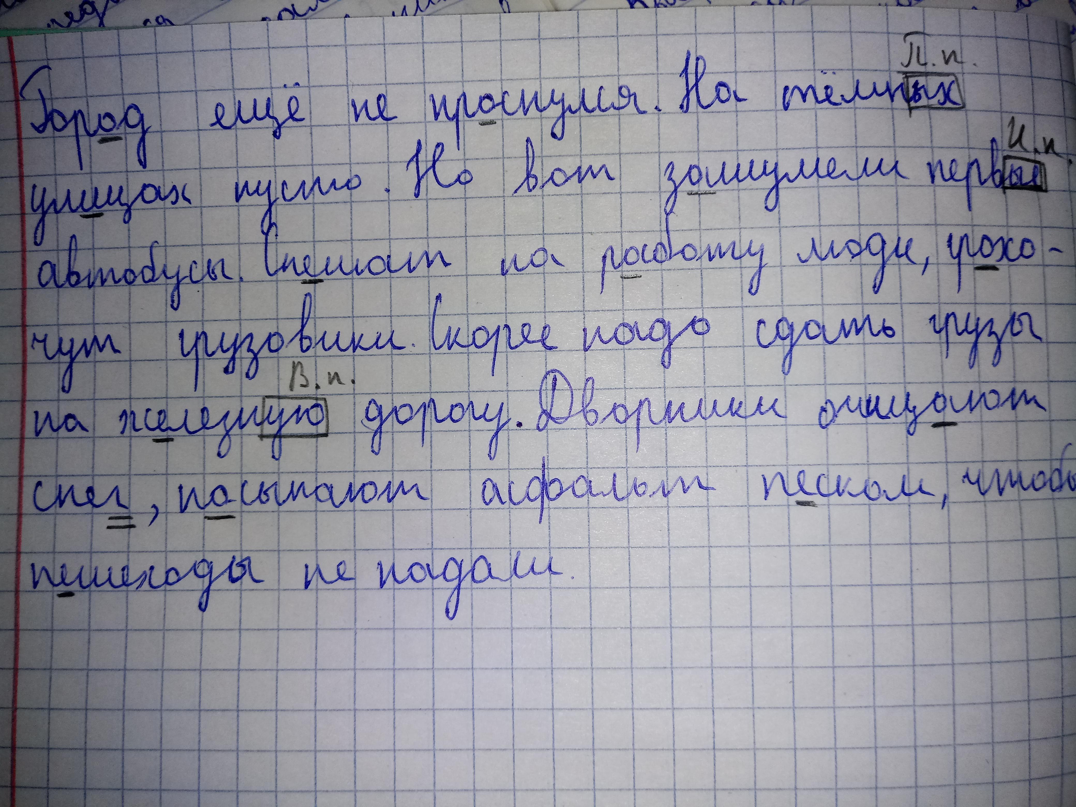 ную д...рогу³. Дворники: очищ.ют сне..., п..сыпают асфальт
