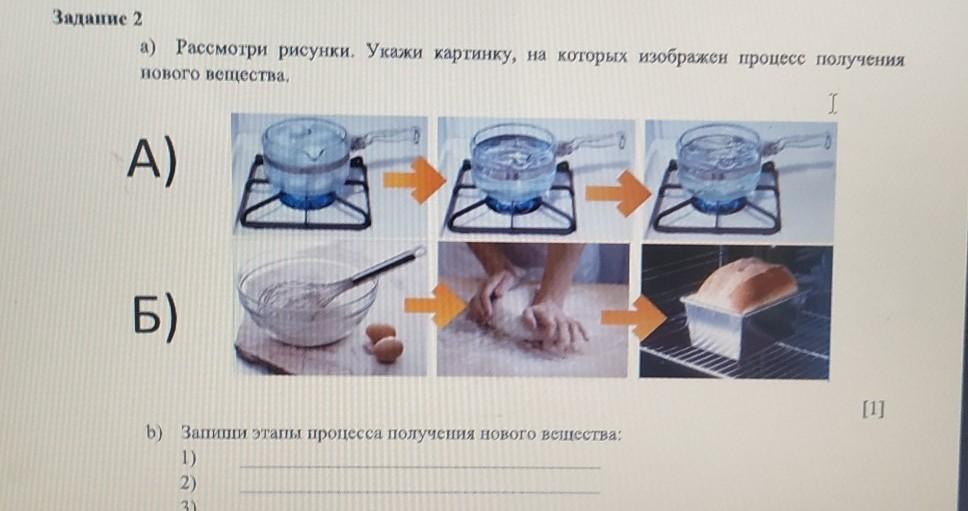 а) Рассмотри рисунки, Укажи картинку, на которых изображен процесс получения