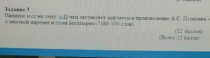 напиши эссе на тему"о чём заставляет задуматься произведение А.С.Пушкина "сказка о мёртвой царевне и семи богаты""
