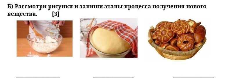 б) Рассмотри рисунки и запиши этапы процесса получения нового вещества.