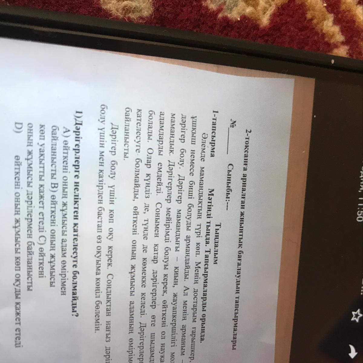 1-тапсырма Мәтінді тыңда. Тапсырмаларды орында.