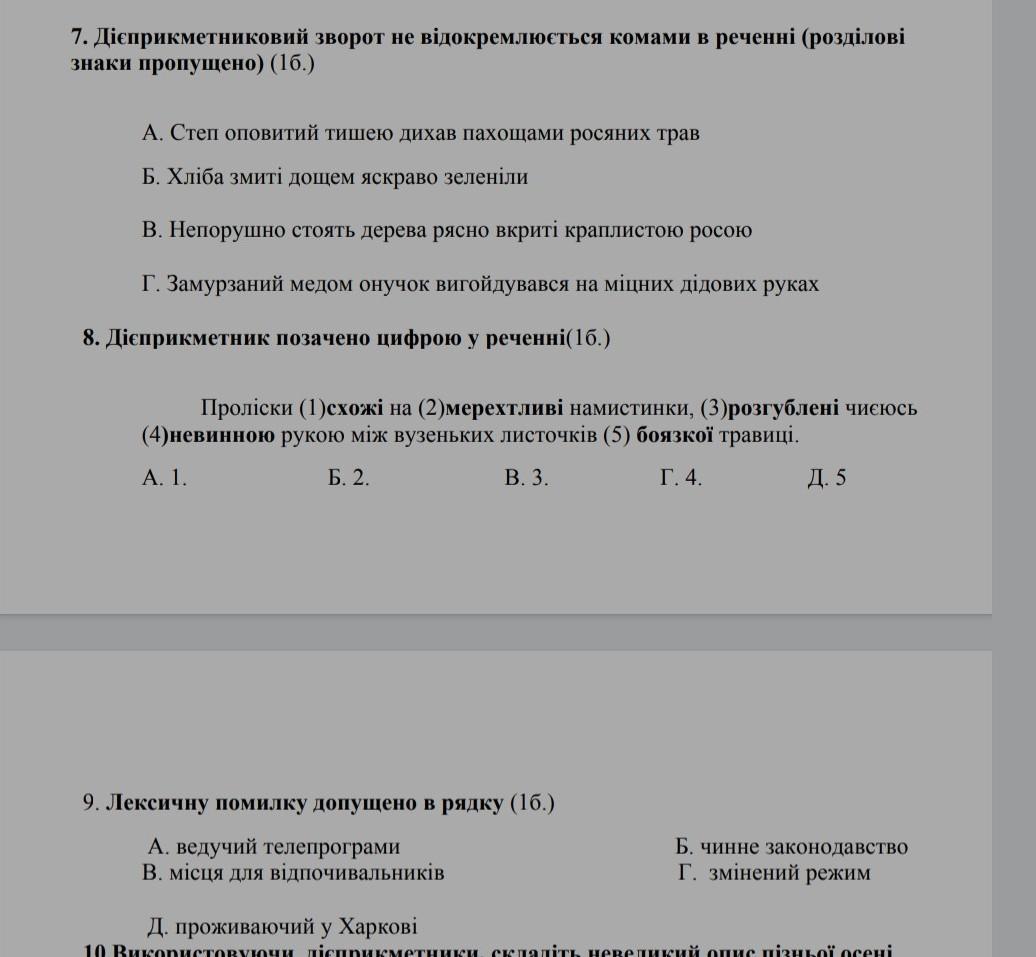 7) Г – тому що дієприкметниковий зворот стоїть перед означуваним словом (онучок)