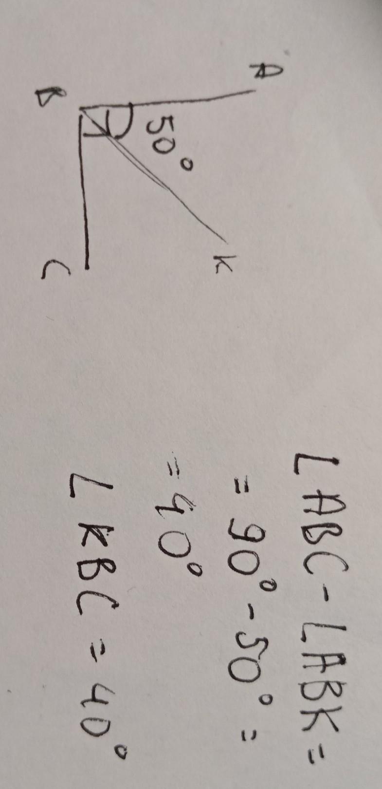 Нарисуйте прямой угол ABC разделите его лучом BK на две части, так чтобы = LABK 50°, найдите величину LKBC