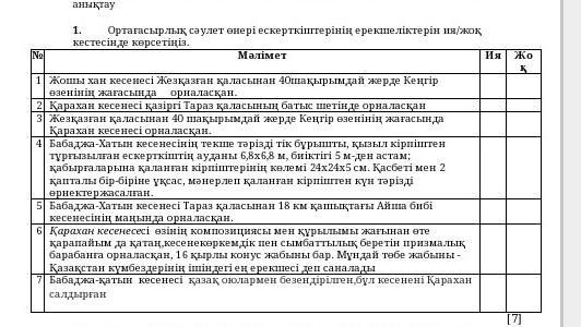 1. Ортағасырлық сәулет өнері ескерткіштерінің ерекшеліктерін ия/жоқ