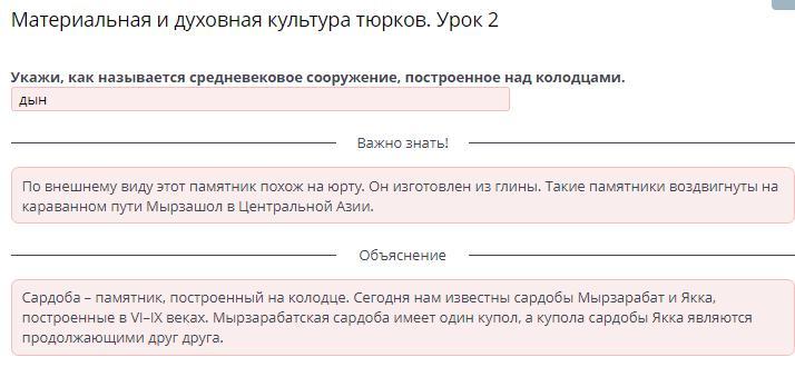 Материальная и духовная культура тюрков. Урок 2. Укажи, как называется средневековое сооружие, построенное над колодцами