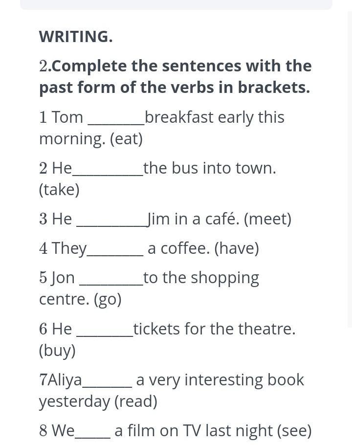 2.Complete the sentences with the past form of the verbs in brackets.