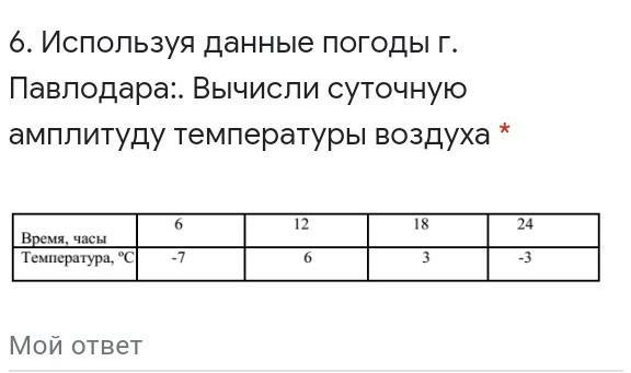Используя данные погоды г. Павлодара:. Вычисли суточную амплитуду температуры воздуха *
