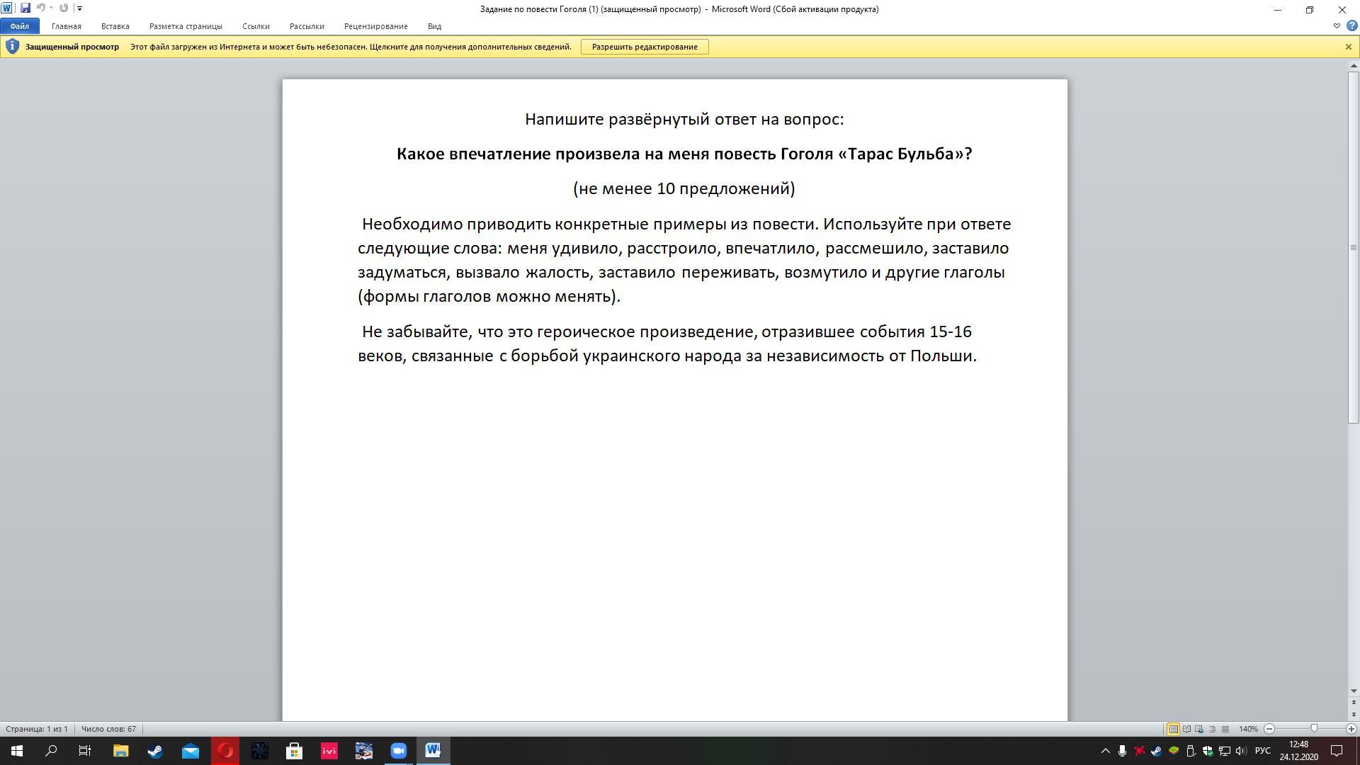 Мне очень понравилась повесть Тарас Бульба. Гоголь чтобы создать повесть обращает внимание, изучает исторические Украинские документы. В основу повести автор положил историю национально-освободительной борьбы украинского народа против польской шляхты.