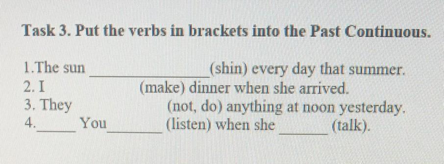Task 3. Put the verbs in brackets into the Past Continuous.