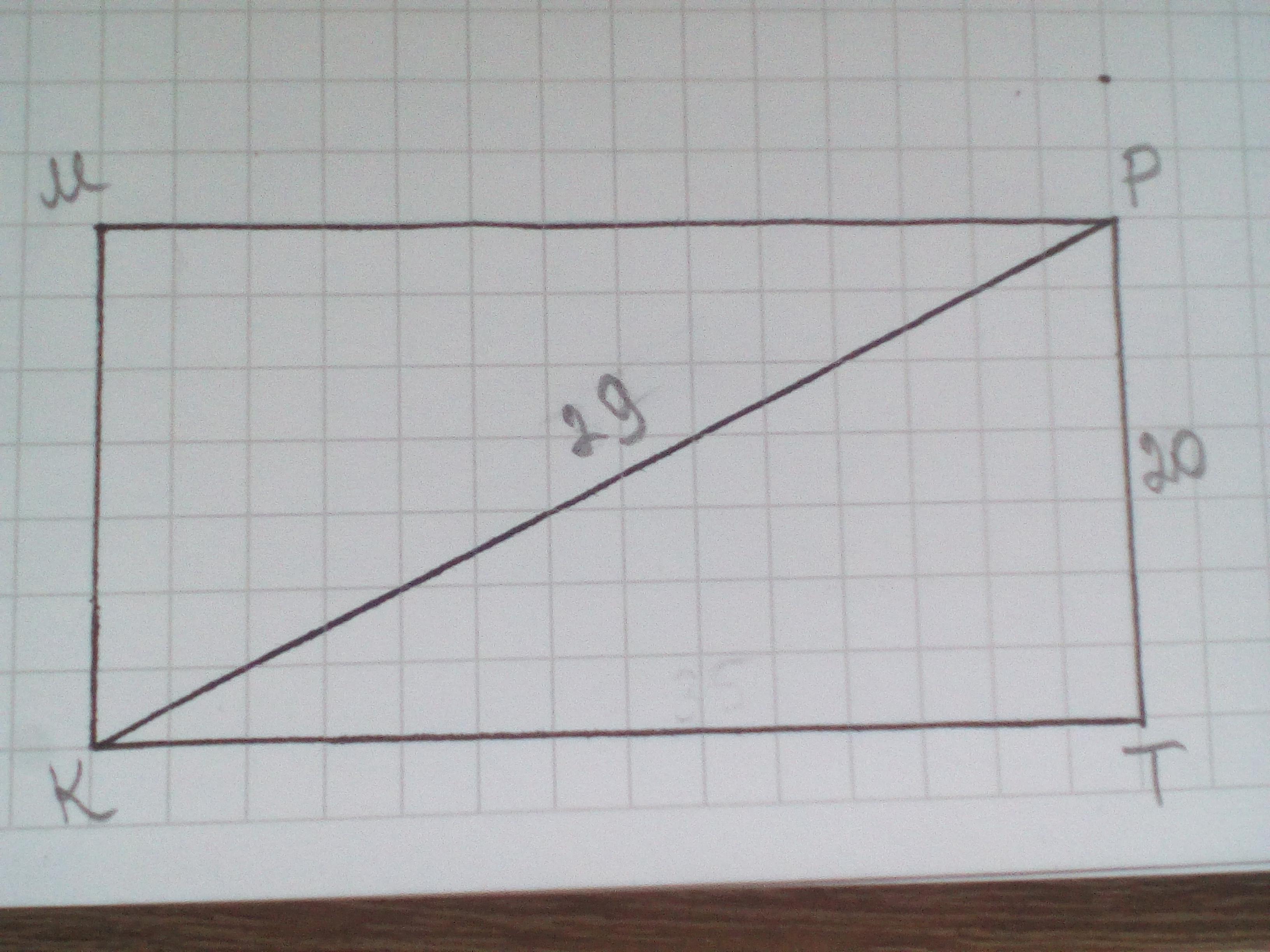 Дано: КМРТ - прямоугольник HТ=20 см, КР=29 см. Найти КТ.