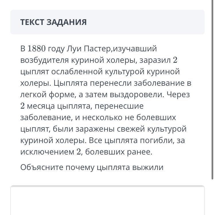 1вопрос:У цыплят была защита от этого заболевания, она выработалась после того, как они переболели.