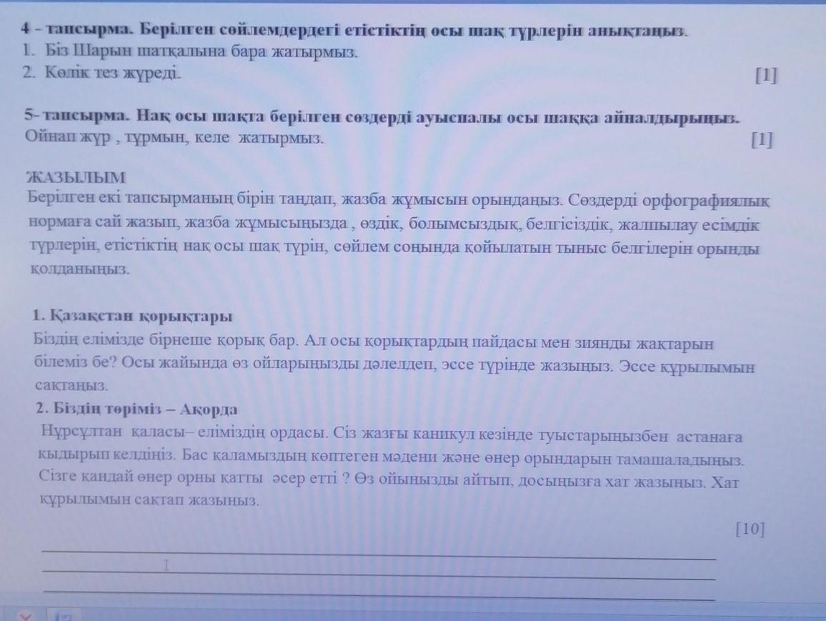 ПОМОГИТЕ ПОЖАЛУЙСТА, СОЧ КАЗАХСКИЙ ЯЗЫК 2 ЧЕТВЕРТЬ 4 - тапсырма. Берілген сөйлемдердегі етістіктің осы шақ түрлерін анықтаңыз.