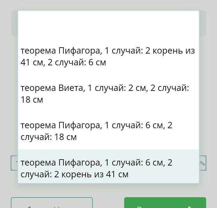 Ответ: значение гипотенузы 2√41см