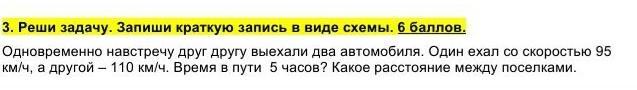 Расстояние будет равно сумме обеих скоростей, умноженных на время, тоесть - (95+110)*5,что будет ровно 1025 км, это и есть расстояние между посёлками