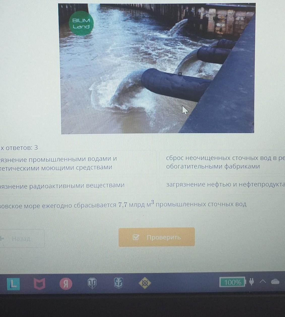 На картинке изображено загрязнение океана сбросами сточных вод. Определи верные