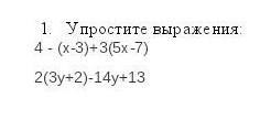 1)4-(х-3)+3(5х-7)=4-х+3+15х-21=14х-14