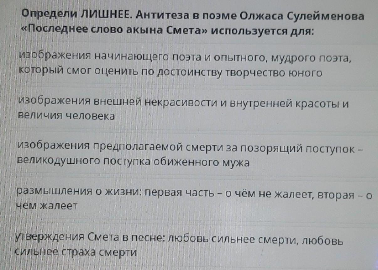 Определи ЛИШHEE. Антитеза в поэме Олжаса Сулейменова