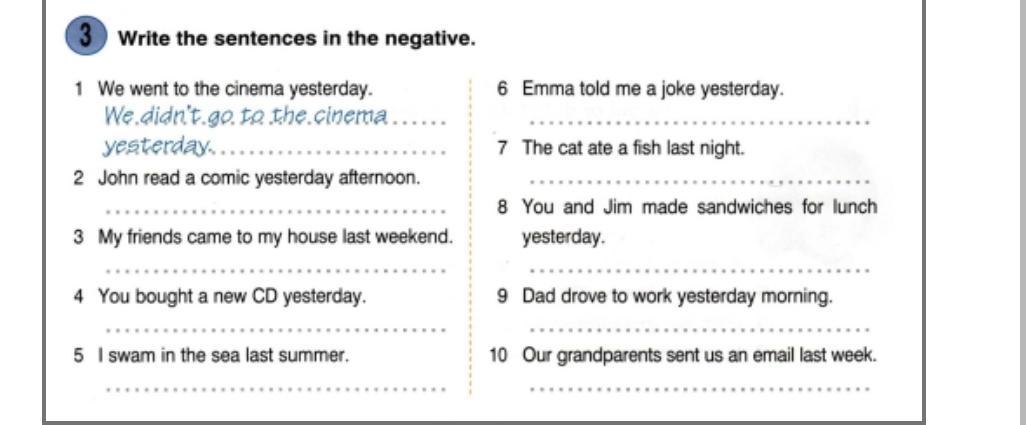 7. the cat didn't eat a fish last night
