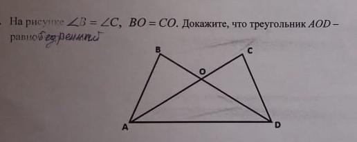 AOB=треугольнику COD по стороне и прилежащим к ней углам. В равных треугольниках соответсвующие стороны равны, отсюда: AO=OD, следовательно треугольник AOD- равнобедренный