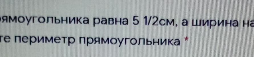 Длина прямоугольника равна 5 1/2см, а ширина на 1/3см короче.
