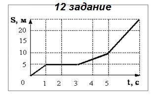 12. На рисунке представлен график зависимости пути велосипедиста S от времени t. На каком интервале времени велосипедист стоял на месте?