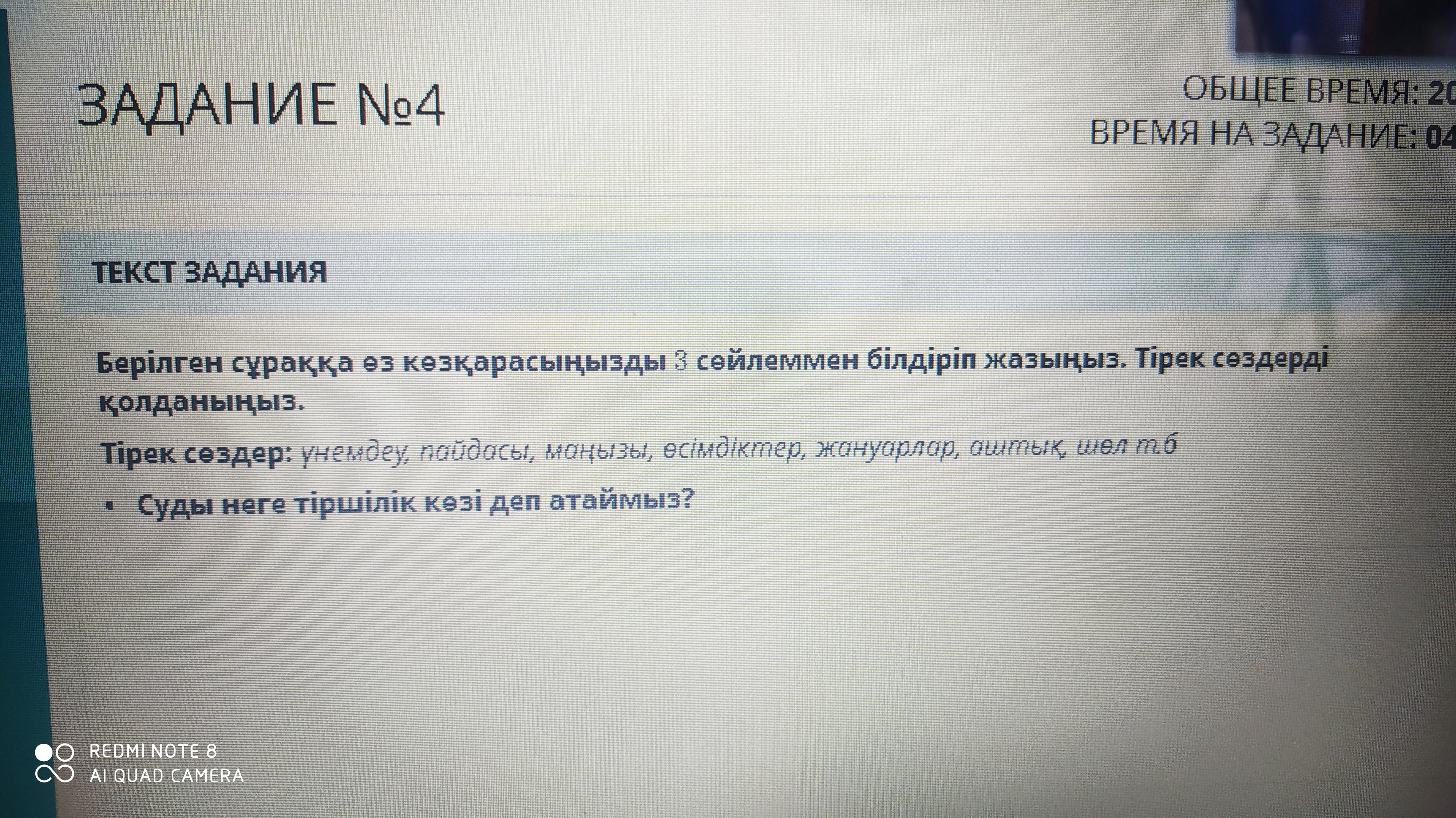 Су -тіршілік көзі деп бекер айтылмаған.Судың тіршілік иелеріне пайдасы ұшан теңіз.Ешкір жануарлар мен өсімдіктер сусыз өмір сүре алмайды.Қазірден бастап суды үнемдемесек,еліміз аштық пен шөлге айналуы ғажап емес.