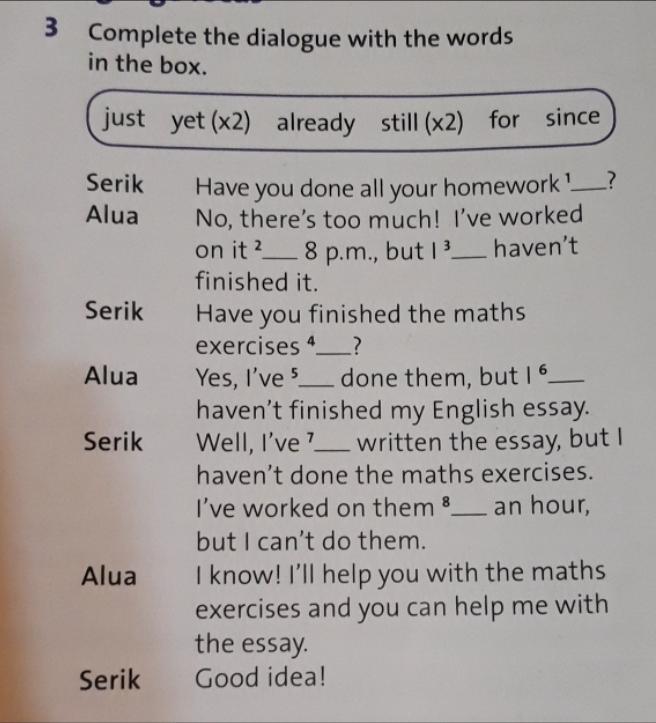 1 just 2 since 3 still 4 yet 5 already 6 still 7 for