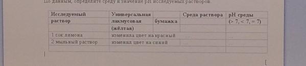 Мыльный раствор на синий- значит щелочная. Ph лимонного сока будет 3, мыльного раствора - 11.