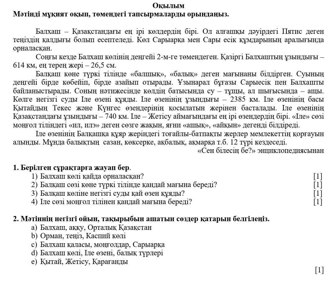 Ответ:1. Балхаш көлі Сарыарқа мен Сары есік құмдарының аралығында орналасқан.