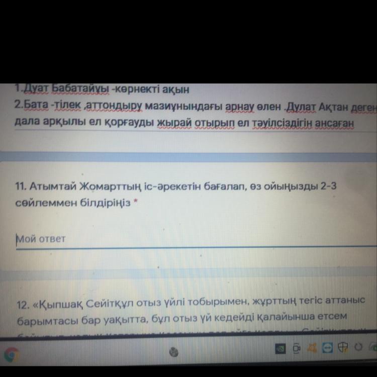 11. Атымтай Жомарттың іс-әрекетін бағалап, өз ойыңызды 2-3