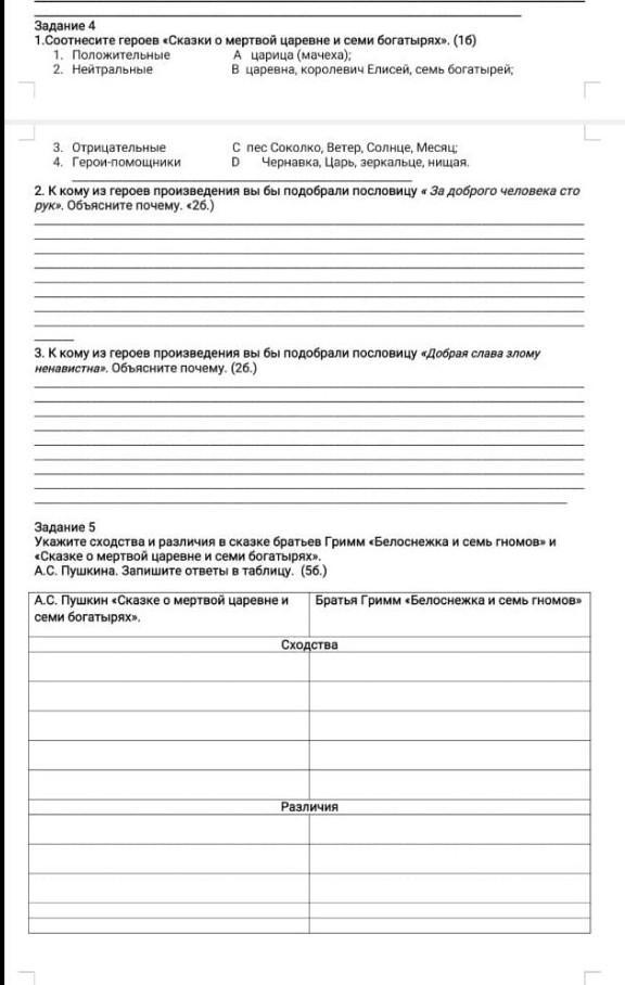 1. Положительные - В. царевна, королевич Елисей, семь богатырей.
