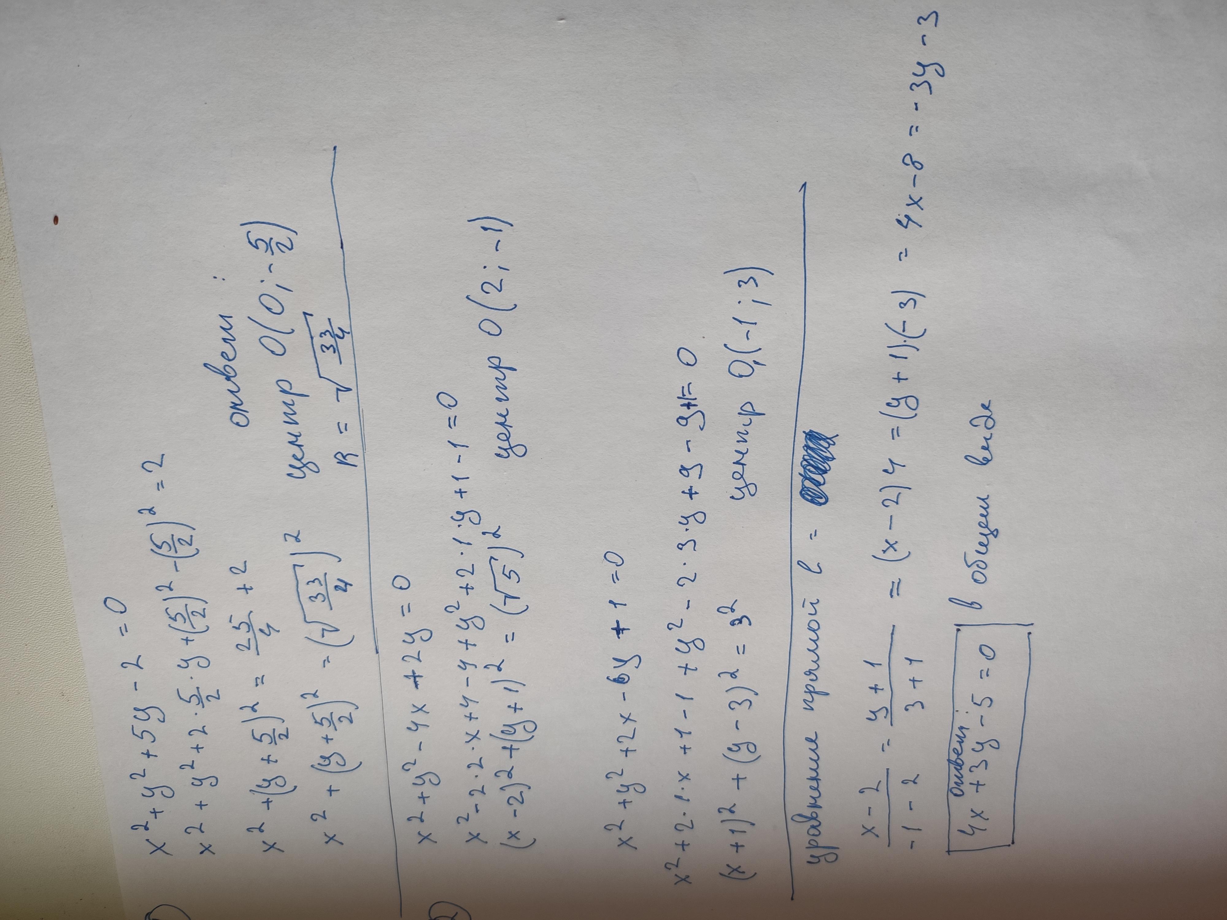 2 Задание. Составить уравнение линии центров окружностей x2+y2-4x+2y=0 и x2+y2+2x-6y+1=0