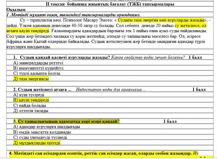 1. Судың қандай қасиеті ауруларды жазады? 1 балл