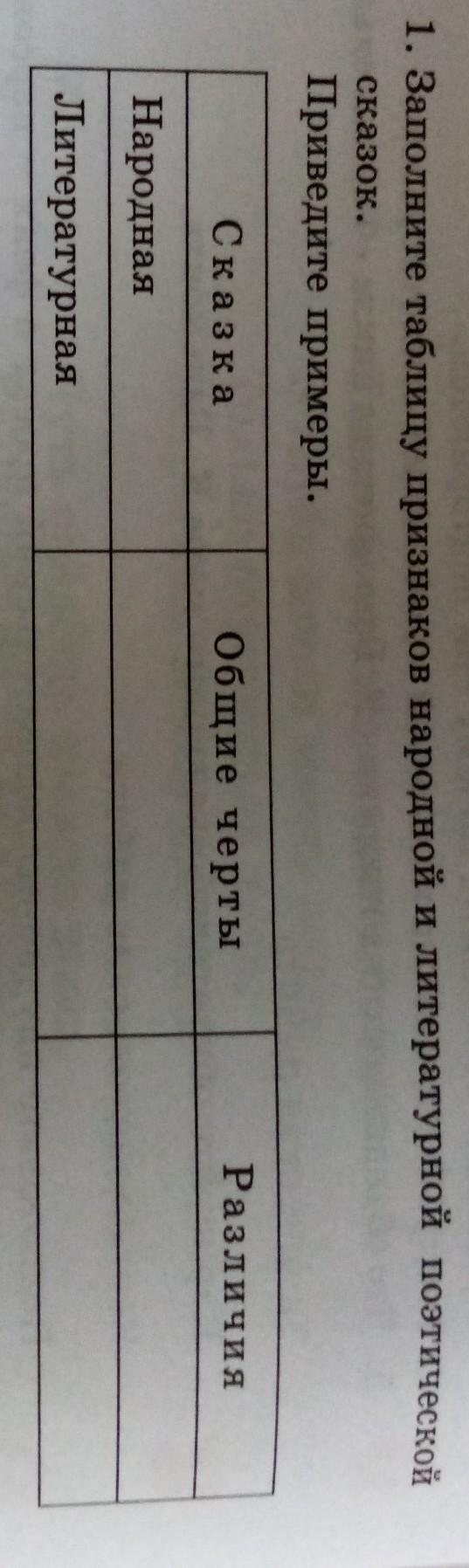 1. Заполните таблицу признаков народной и литературной поэтической