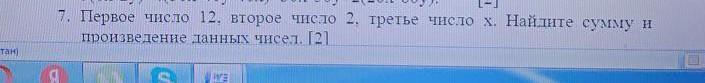 первое число 12, второе число 2, третье число x , найдите сумму и произведения данных чисел.