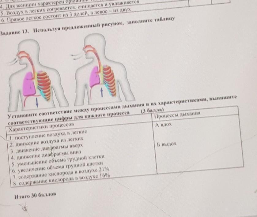 Установите соответствие между процессами дыхания и их характеристиками, выпишите