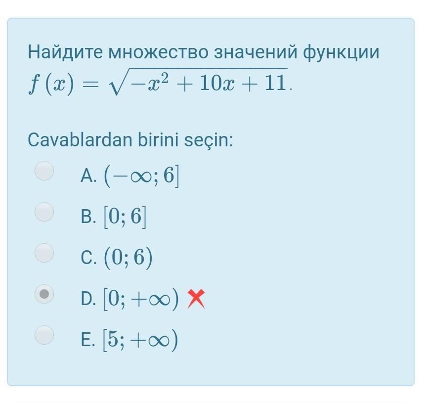 Среди представленных вариантов правильного ответа нет, т.к. х€[-1;11]