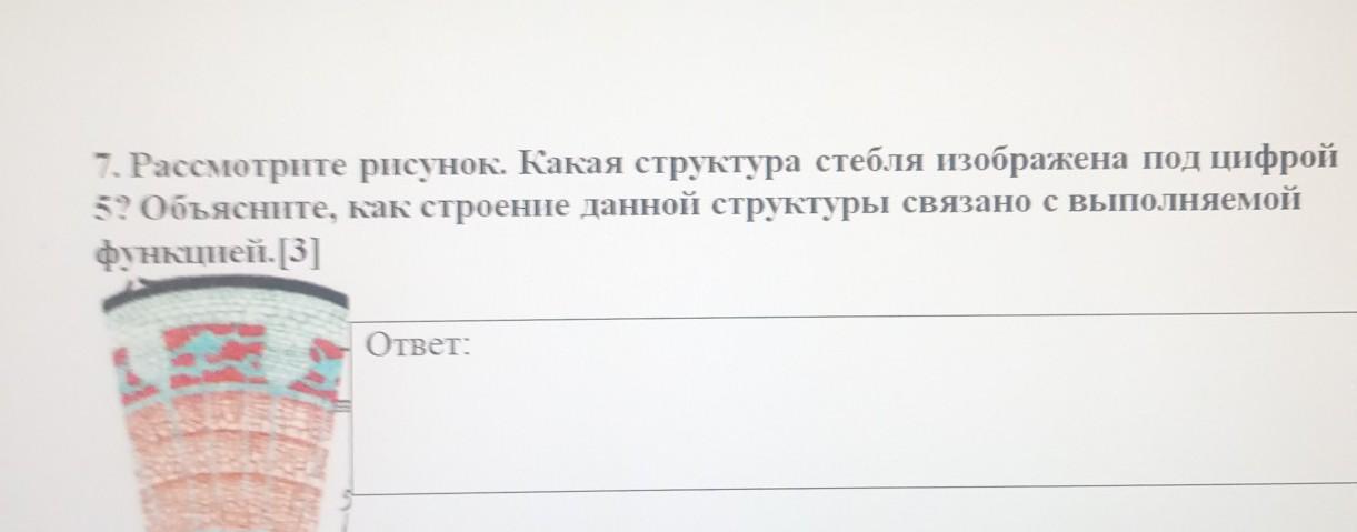 Рассмотрите рисунок Какая структура стебля изображено под цифрой 5 Объясните как строение данной структуры связано с выполняемой функцией