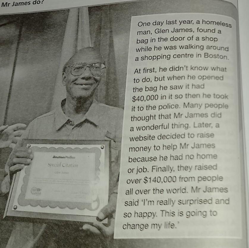 1. Glen James was walking around a shopping centre in Boston when he found the bag.
