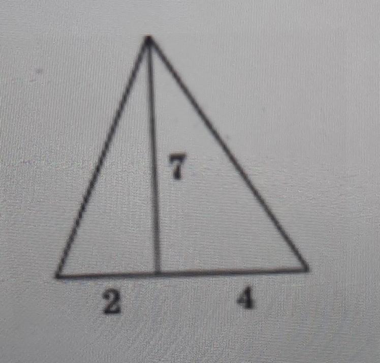 Обозначим вершины треугольника буквами(смотрите рисунок). Если предположить, что AH - высота треугольника, то возможно найти площадь треугольника как половина произведения высоты на сторону к которой она проведена. BC = BH + HC = 2 + 4 = 6.