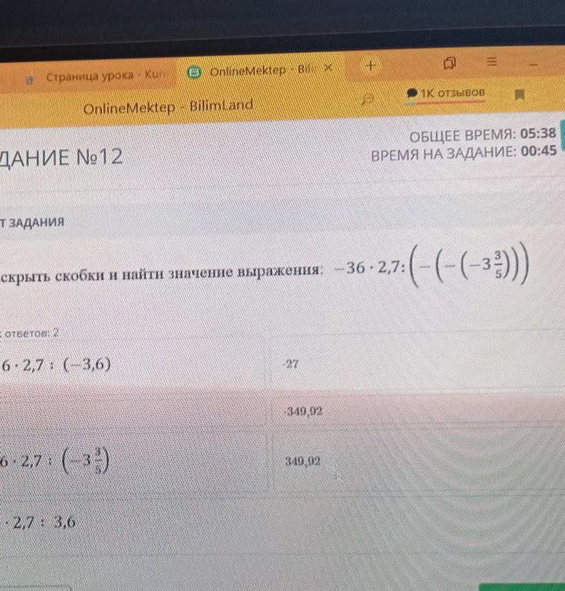 Раскрыть скобки и найти значение выражения: -36 × 2,7: