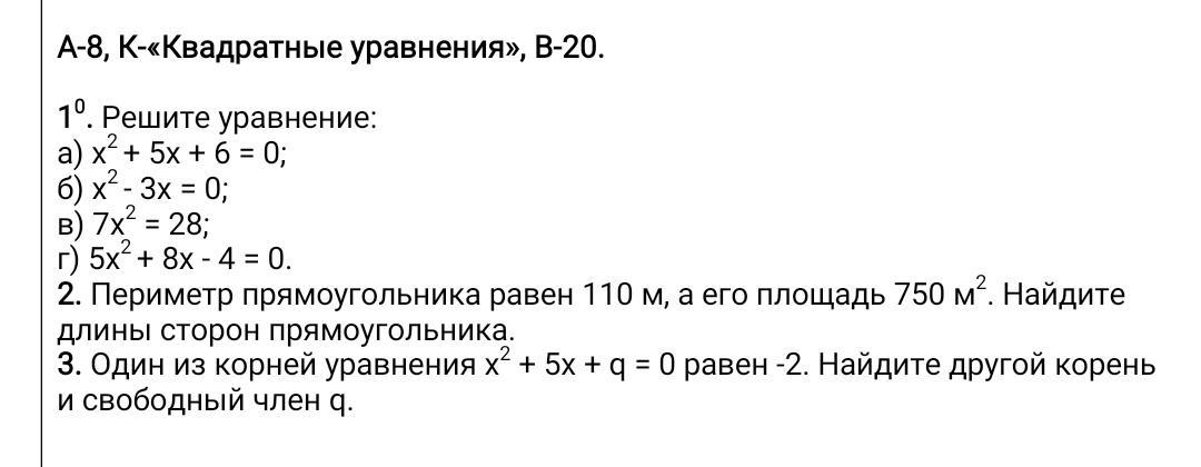 г) 5х² + 8х - 4 = 0