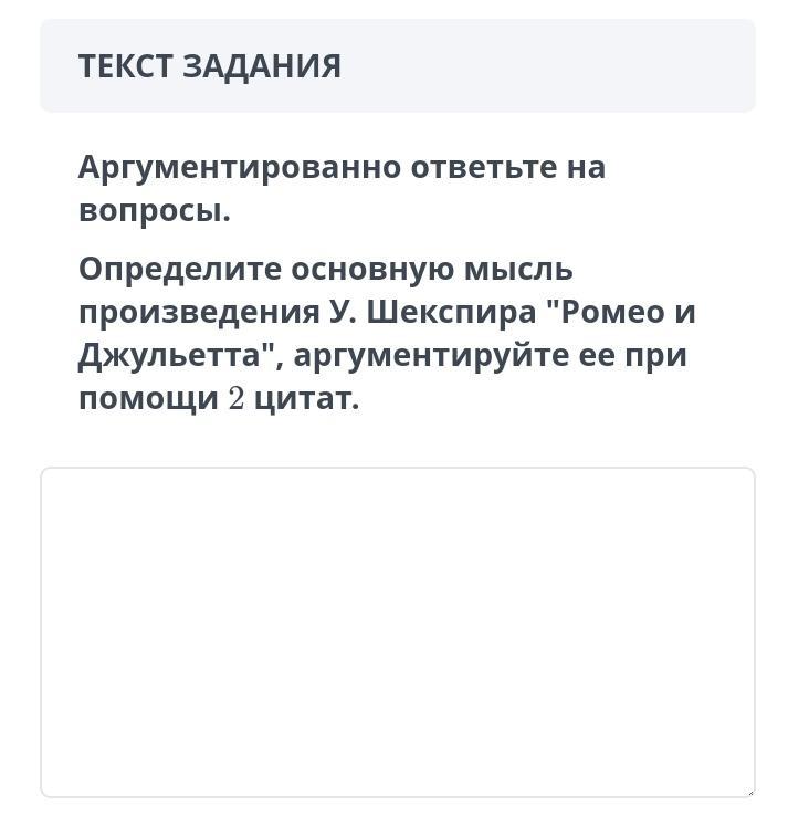 Аргументированно ответьте на вопросы. Определите основную мысль произведения У. Шекспира "Ромео и Джульетта", аргументируйте ее при помощи 2 цитат.