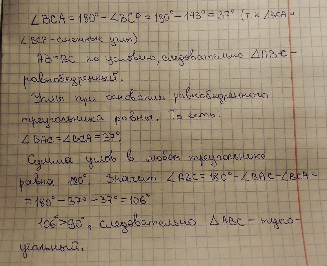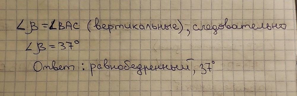 ∆АВС – равнобедренный тупоугольный. Из предложенных вариантов подходит только равнобедренный.