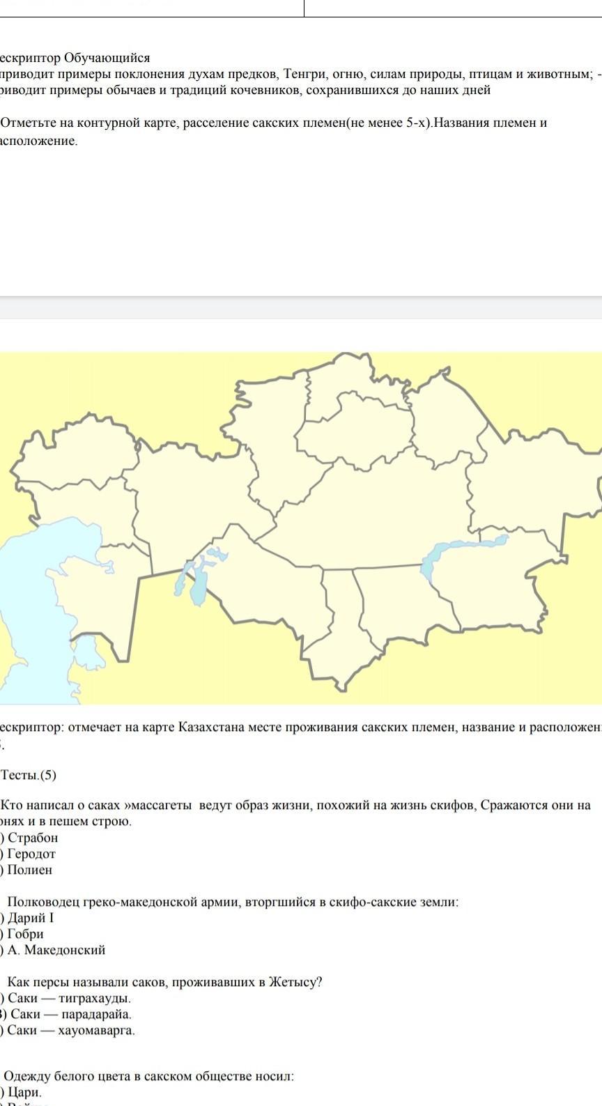 Отметьте на контурной карте, расселение сакских племен(не менее 5-х).Названия племен и