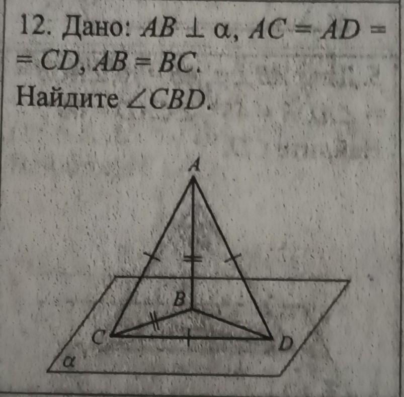 Дано: AB ⊥ α, AC = AD = CD, AB = BC