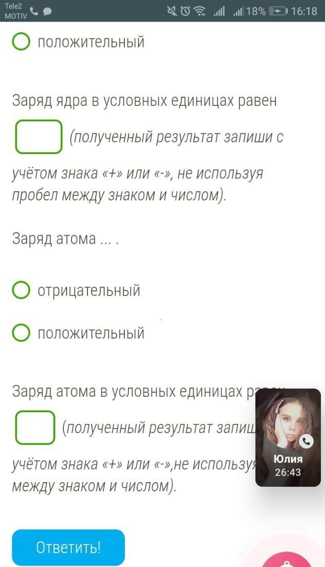 Заряд атома положительный